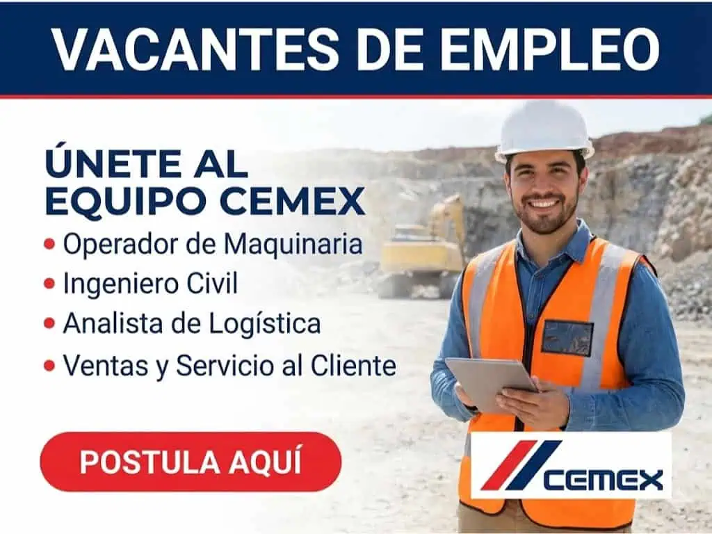 Además, CEMEX ofrece beneficios competitivos, estabilidad laboral y programas de crecimiento interno, convirtiéndose en una opción atractiva para quienes buscan empleo formal y con proyección a futuro ✨.